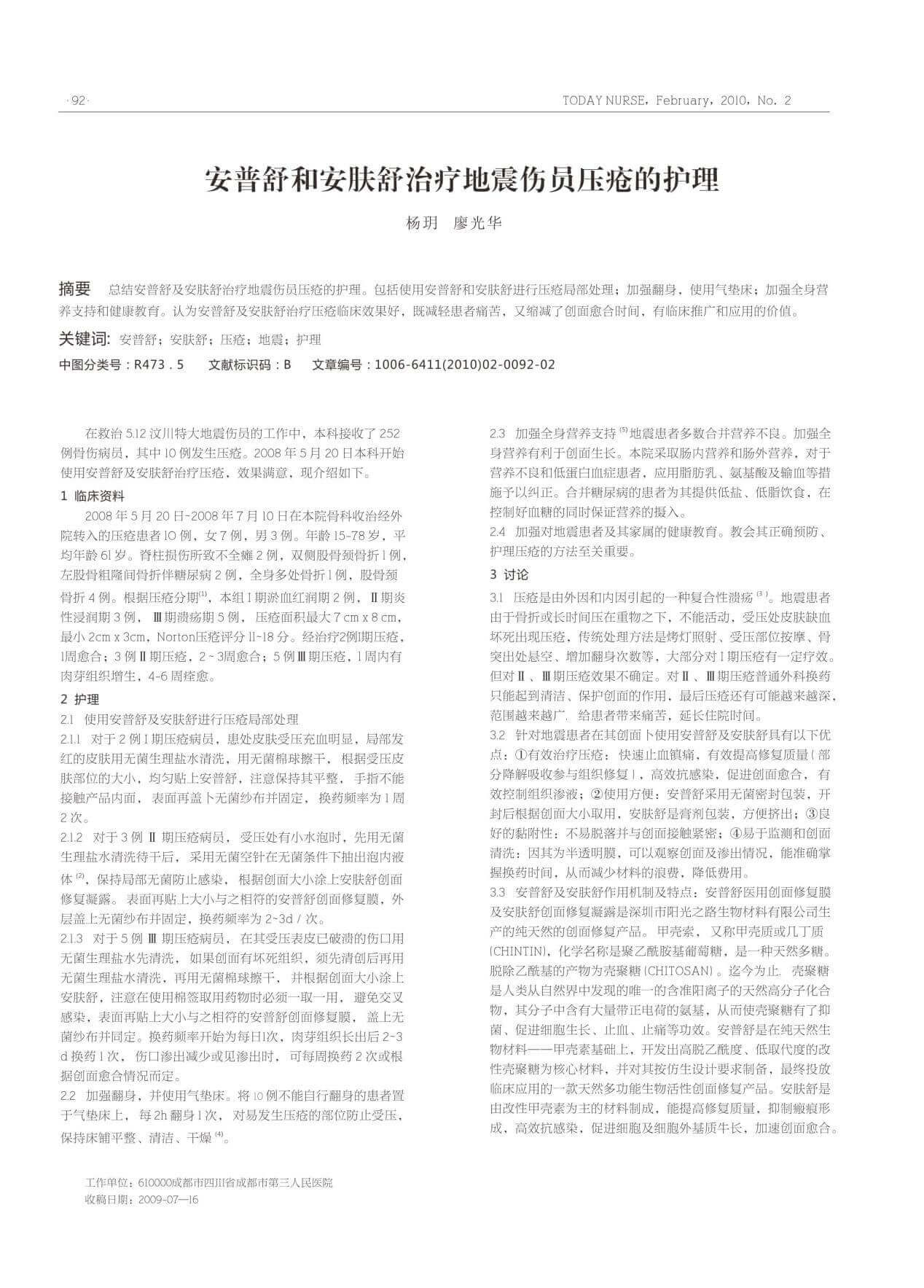 安普舒和安肤舒治疗地震伤员压疮的护理